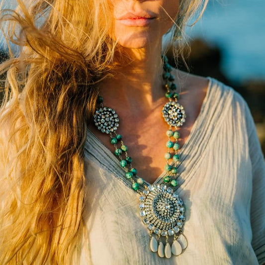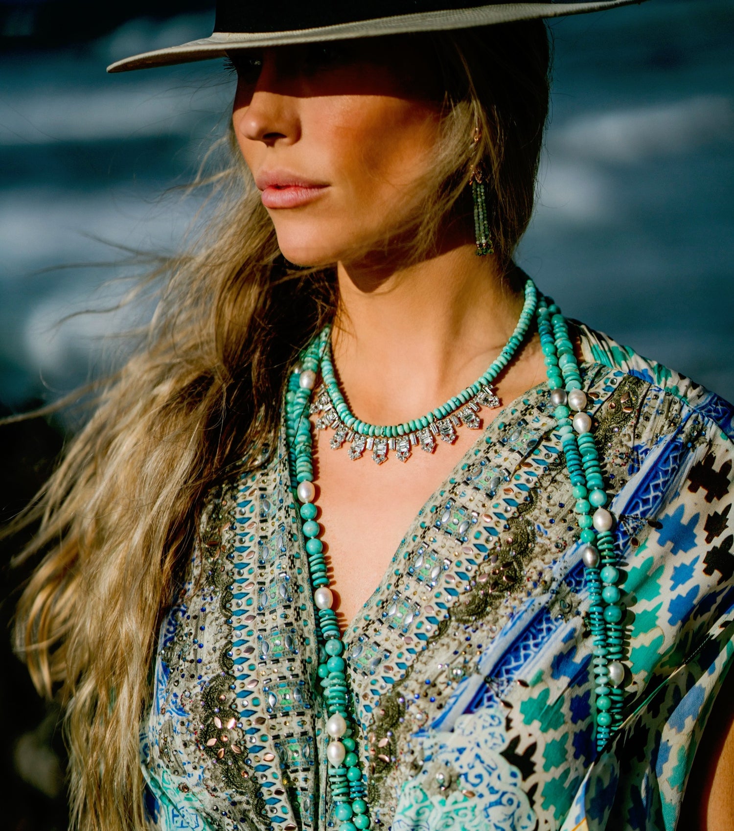 Island Wear encompasses necklaces in tribal, elegant designs & earrings with reoccurring tear drop shapes, delicate seed bead work, or chain detailing. This ready to wear collection personifies any island getaway.