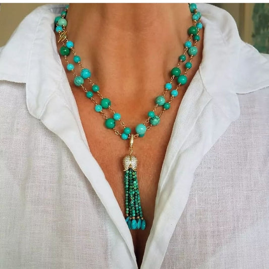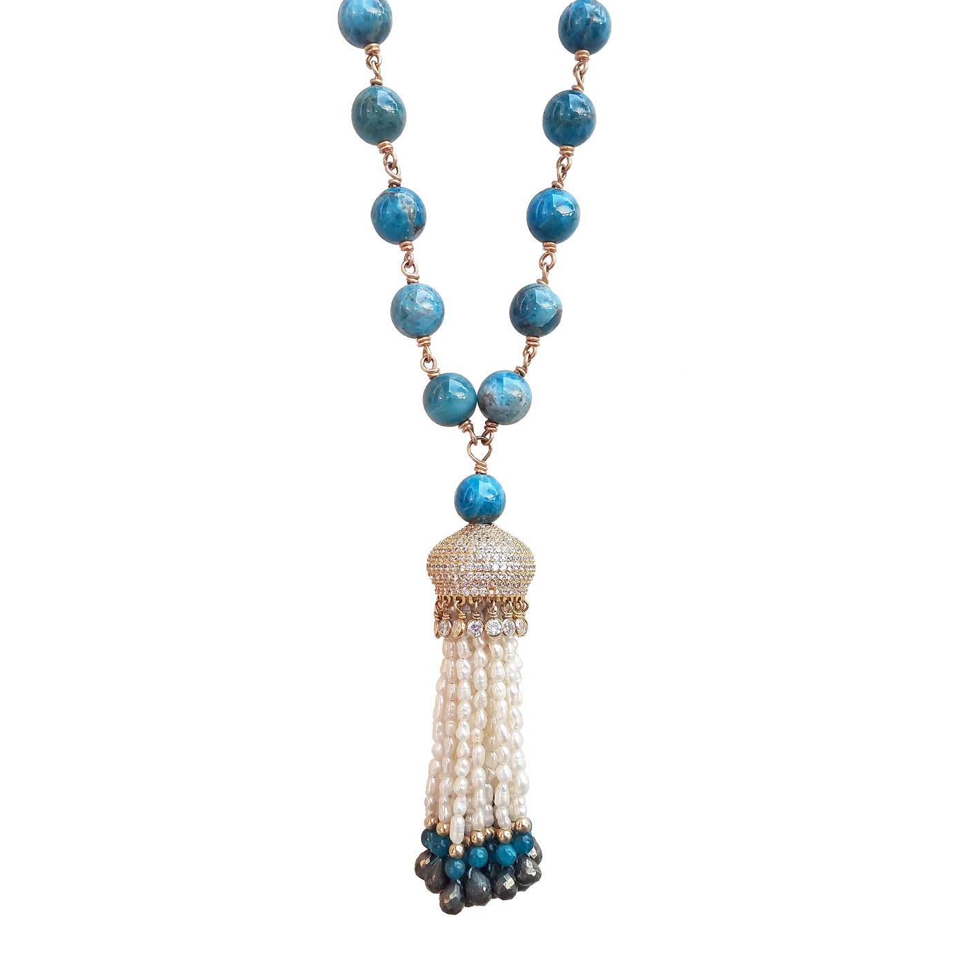 The Tassel Collection is a luscious assortment of earrings & necklaces with meticulously beaded tassels in a diverse array of colors. Inspired by high jewelry made by long-standing couture lines.
