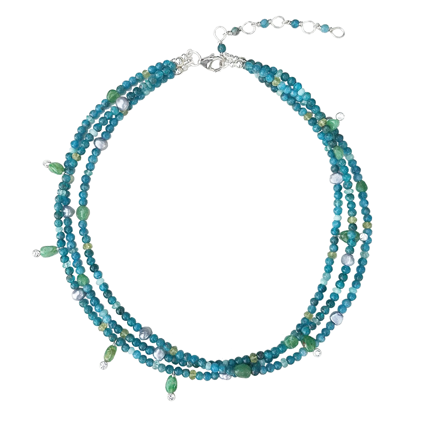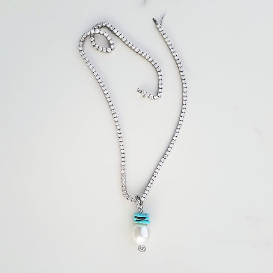 Australian Pearl, Mix Turquoise, & Amazonite Helix Necklace