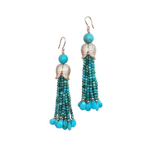 The Tassel Collection is a luscious assortment of earrings & necklaces with meticulously beaded tassels in a diverse array of colors. Inspired by high jewelry made by long-standing couture lines.